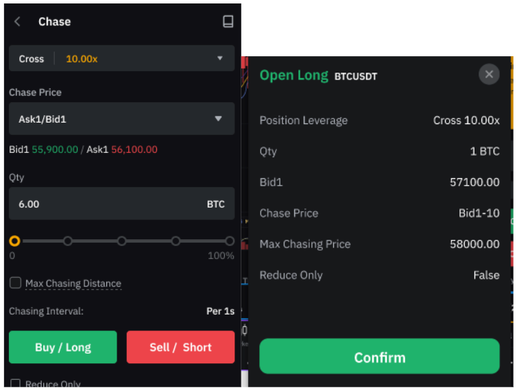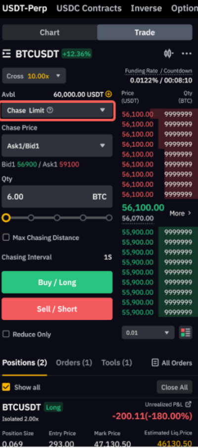 — Each trader can place one Chase Limit Order, either long or short, per trading pair. The maximum number of open Chase Limit Orders allowed per UID is five (5).