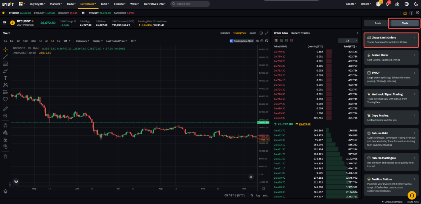 Step 3: On the Bybit website, click the Tools tab, and select Chase Limit Orders