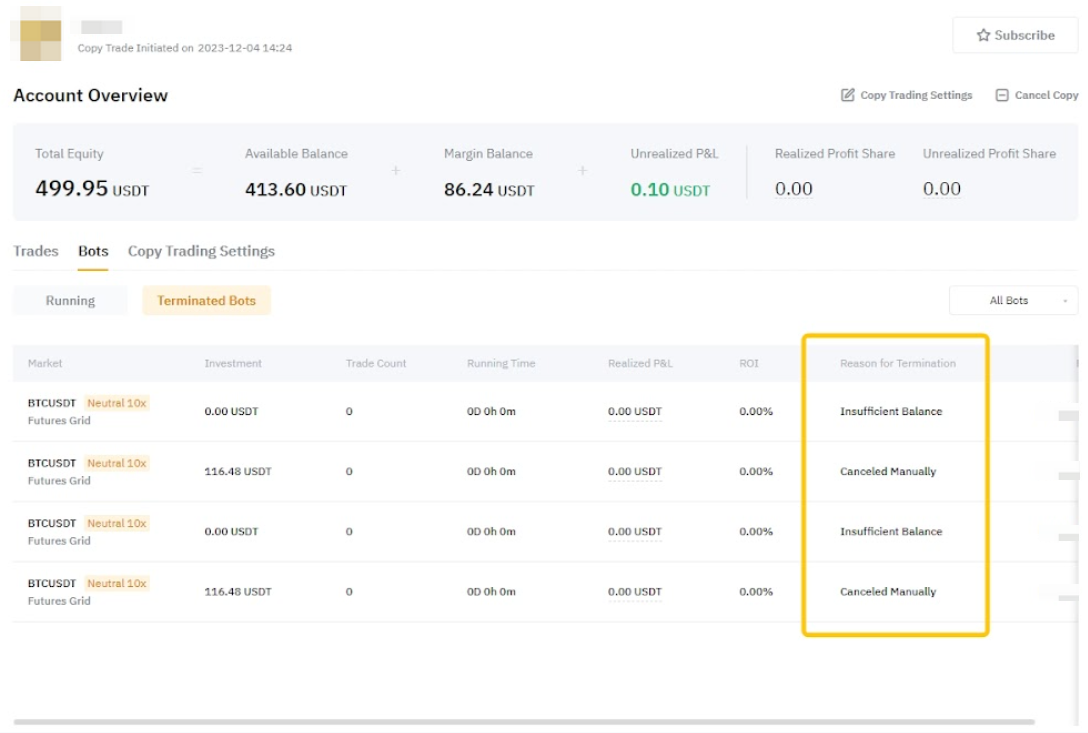 Market conditions have changed significantly after the Master Trader initially created the bot, and the market is no longer suitable. In such cases, the Bots will not be copied. For example, the entry price of the follower’s position created by the copied trading bot will be worse than the Master Trader’s. In this case, the Master Trader’s trading bot will be deemed as not suitable to be copied.