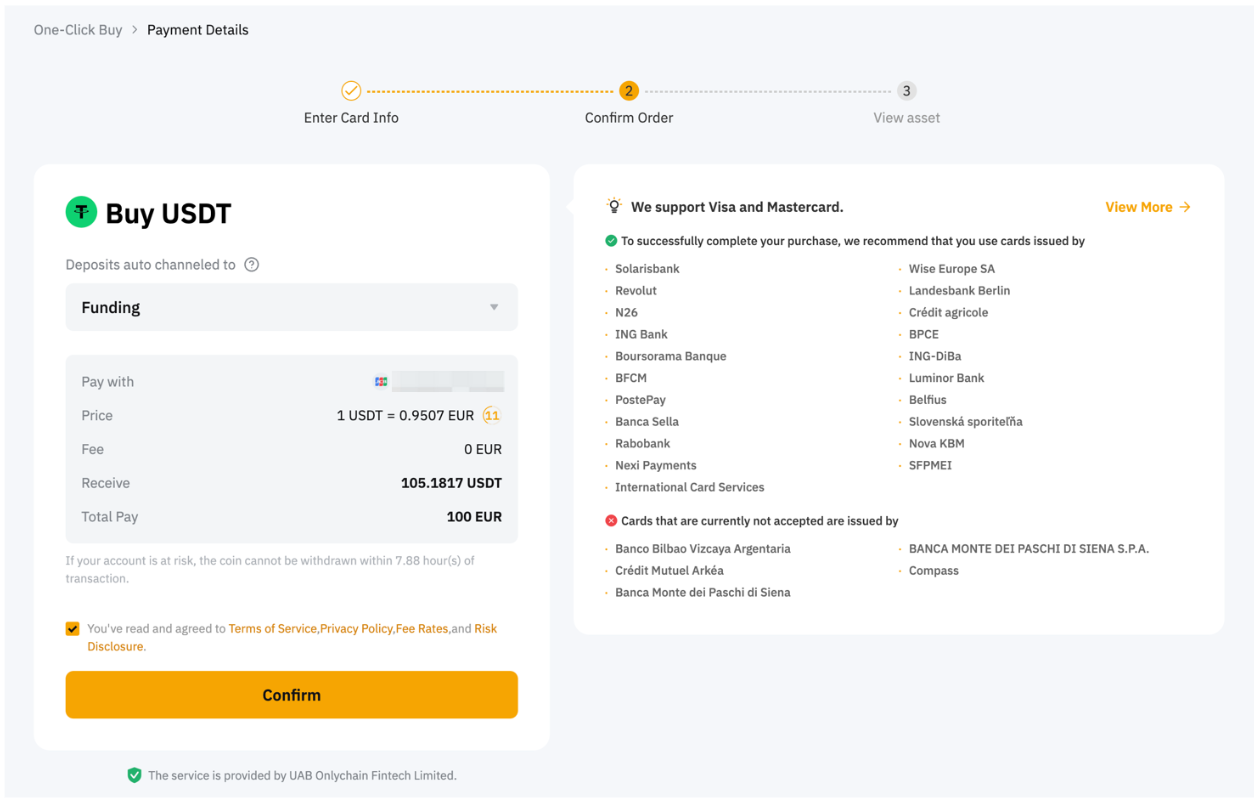 Currently, Visa and Mastercard payments are supported. Please also complete identity verification before purchasing coins. To learn more about KYC requirements, please refer to FAQ — Bank Payments.