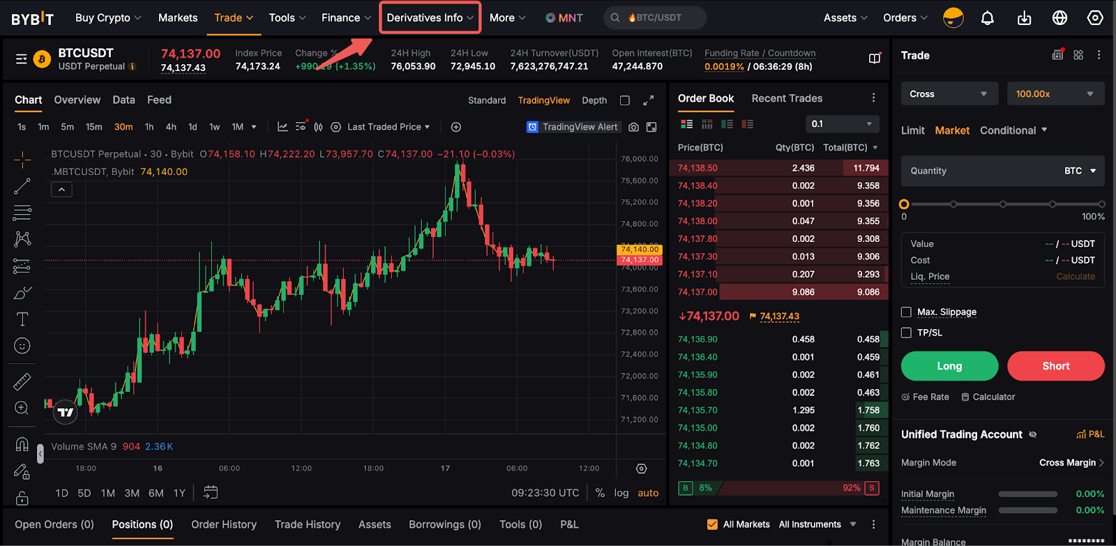 To view the collateral and borrowable asset details, go to the Derivatives Trading Page and click on Derivatives Info. Then, click Lending and Borrowings → Margin Trading → Margin Specification.