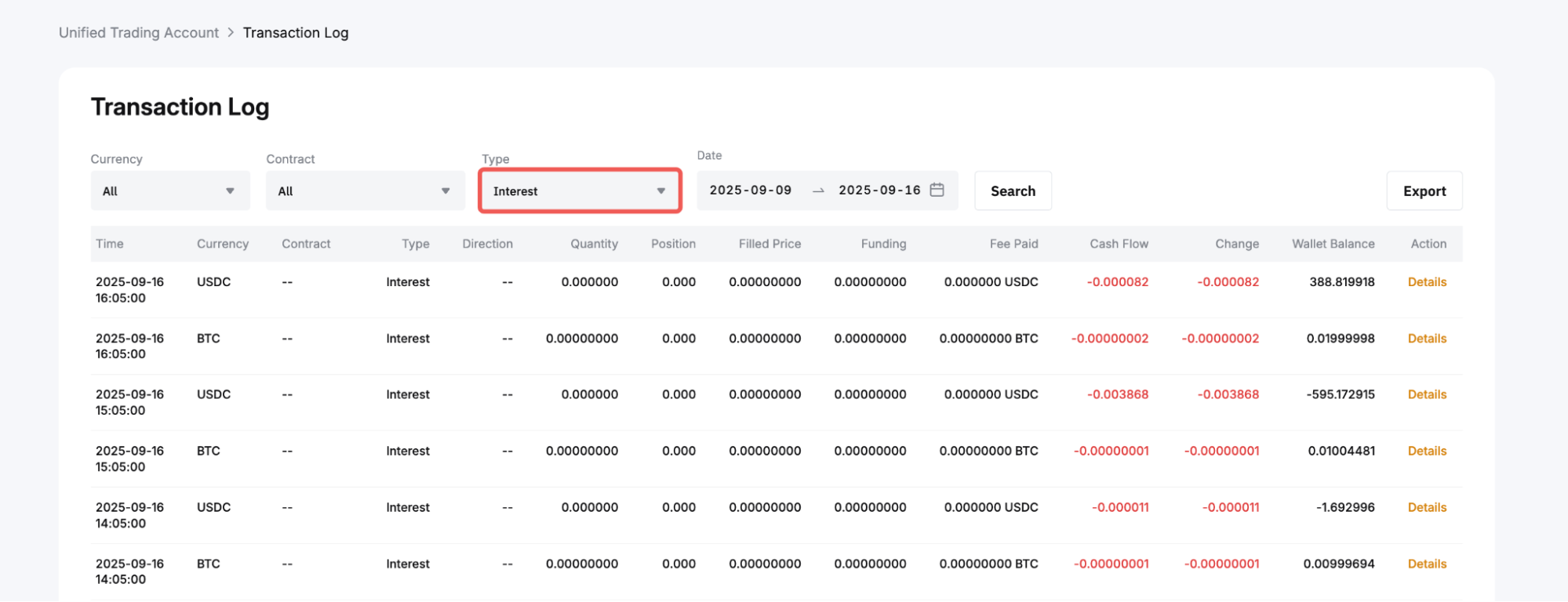 Transactions that reduce wallet balance — such as trading fees, funding fees or realized losses from closed positions — are realized expenses. The borrowed amount in these cases is subject to interest accrual.