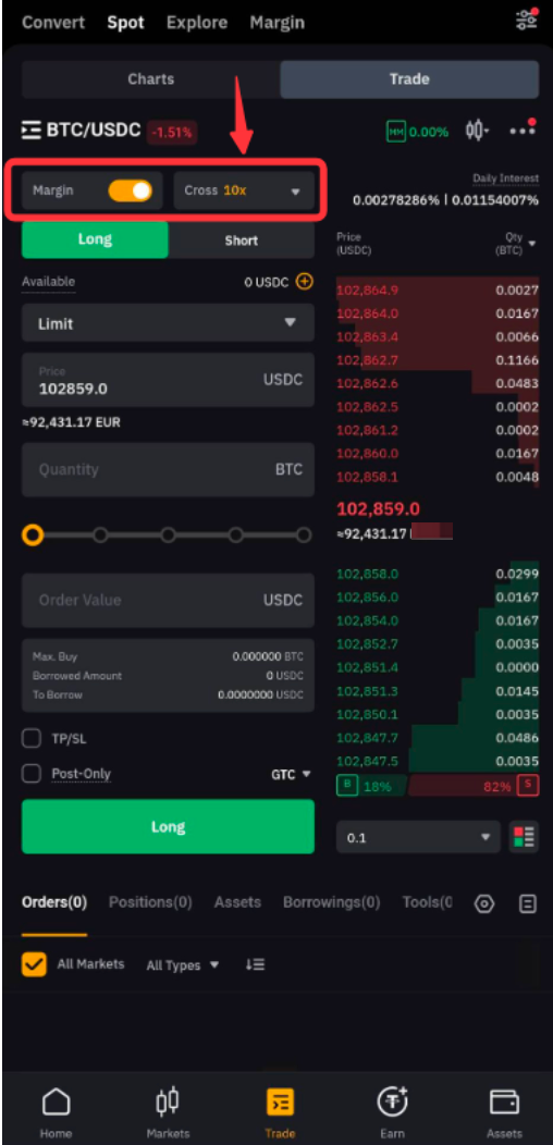 1. Manually sell other margin assets through Spot Trading to convert them into the assets that you borrowed. However, please note that if the Initial Margin Rate (IMR) is 100%, you are not allowed to place an order to buy assets with a lower collateral value ratio using assets with a high collateral value ratio. You can log in to your Unified Trading Account and check the collateral value ratio from here.
