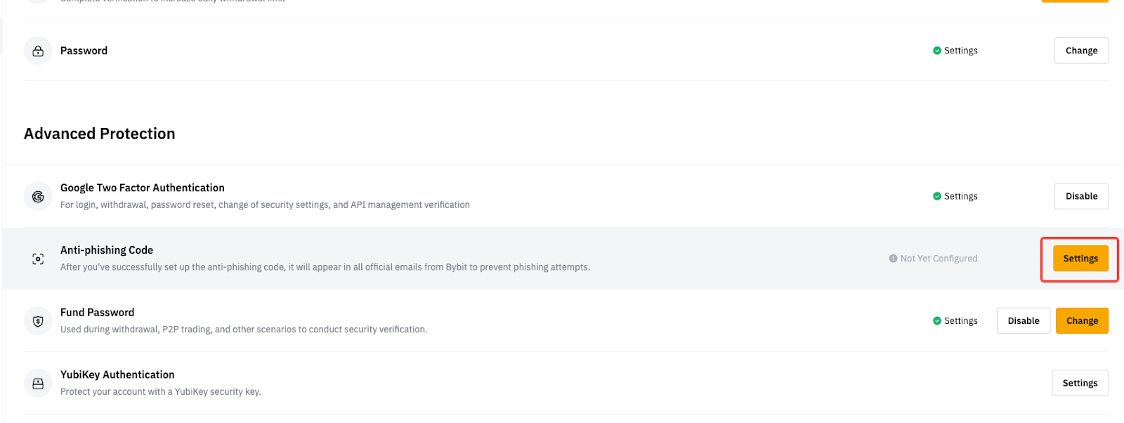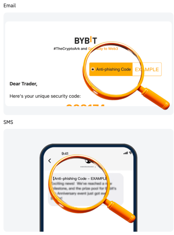 To prevent phishing attempts, Bybit strongly suggests setting up the Anti-phishing Code via the website or the App. If you have not set up your Anti-Phishing Code, please go to your Account & Security page and follow this guide to get started.