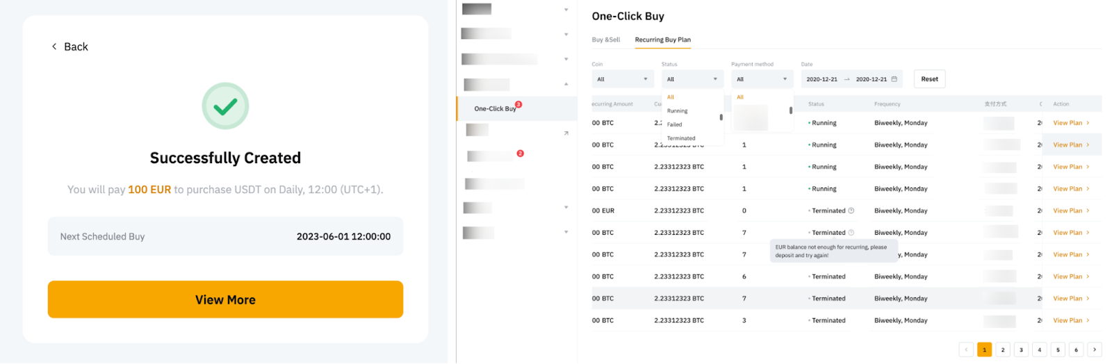 2. Dutch users can only use the four (4) pairs: EUR/USDT, EUR/USDC, EUR/ETH and EUR/BTC to purchase Recurring Buy plans.