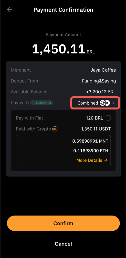 • Combination payment only supports payment in USDT.