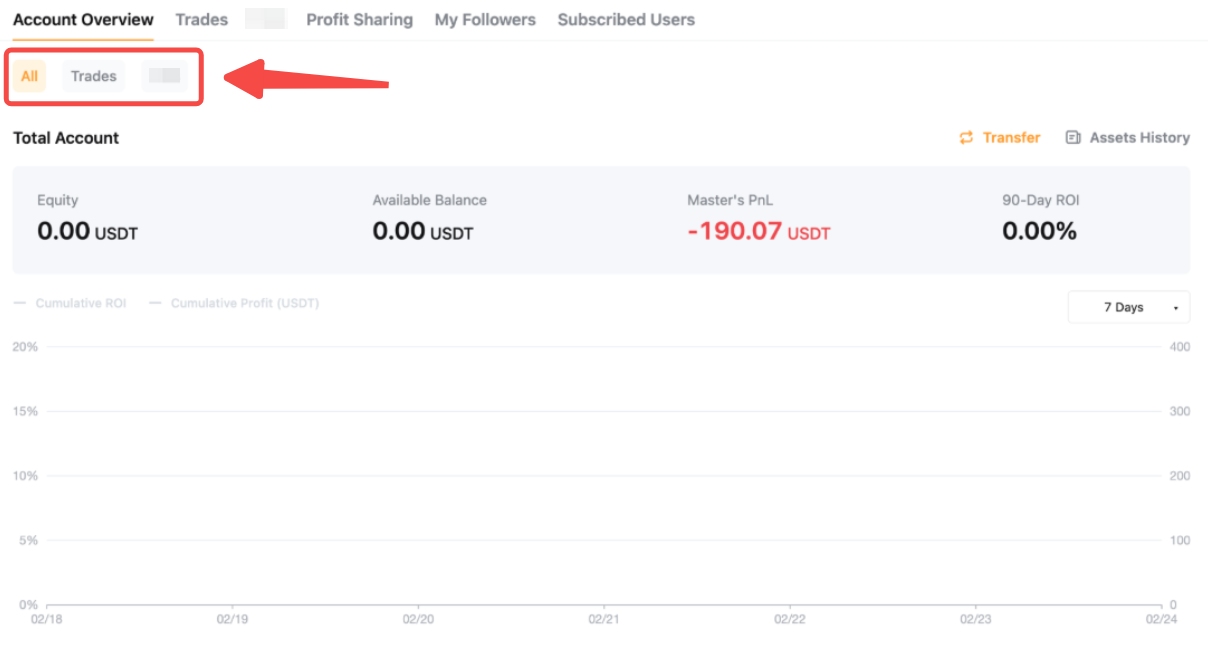 From the Copy Trading User Center (Master Trader), you can get an overview of your Copy Trading Account, including past performances, followers’ performances, and your order details.