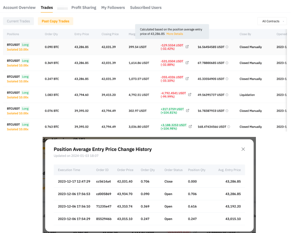 Please note that the Entry Price displayed in the order details is the position average entry price. To change the display to the order-filled price, you can move your cursor to the entry price and choose the Entry Price to display.