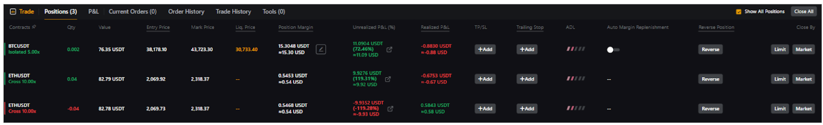 3) The Unrealized P&L does not take into consideration any trading fees and funding fees that have been paid out to open and hold the position.