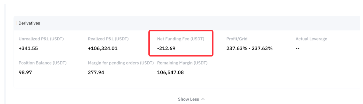 Una cantidad negativa en la comisión de financiación indica que está recibiendo (ganando) la comisión de financiación del intervalo de financiación anterior. Por el contrario, si ves una cantidad positiva, significa que estás pagando la comisión de financiación, lo que se traduce en una reducción de tu margen restante dentro de tu bot.