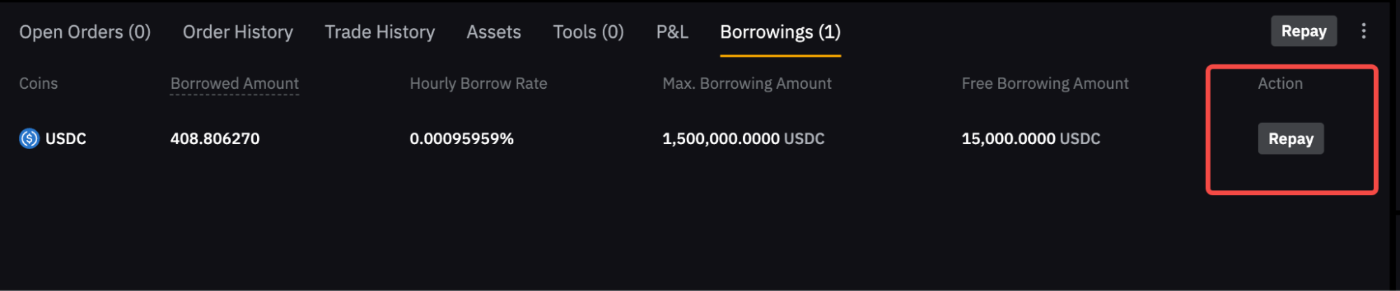 Para obtener más información, consulta Préstamo, interés y pago (cuenta de trading unificada).