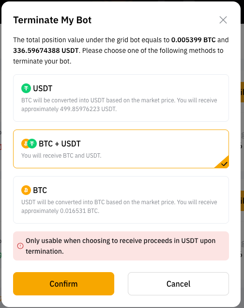 Cuando finalices tu bot, el sistema utilizará automáticamente cualquier voucher disponible para cubrir tus pérdidas. Sin embargo, debes asegurarte de que el tipo de moneda para la liquidación del bot coincida con el tipo de moneda designado en el voucher para poder utilizarlo como cobertura de pérdidas.