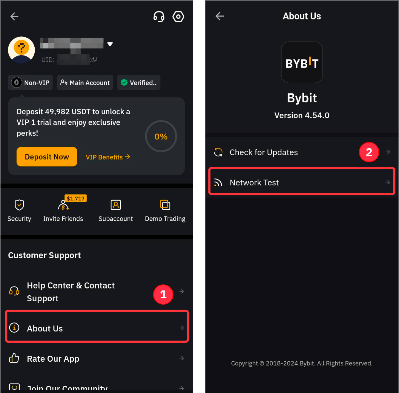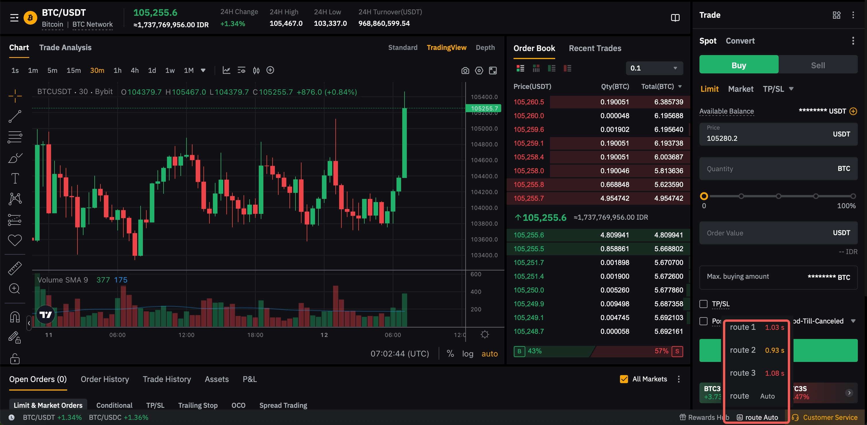 Si no está utilizando un VPN o si ya está desactivado, por favor, compruebe si su conexión es rápida, fiable y segura. Puede comprobarlo en el sistema de enrutamiento de Bybit que le indicará la conexión a Internet en la esquina inferior derecha de su página de trading de Bybit.