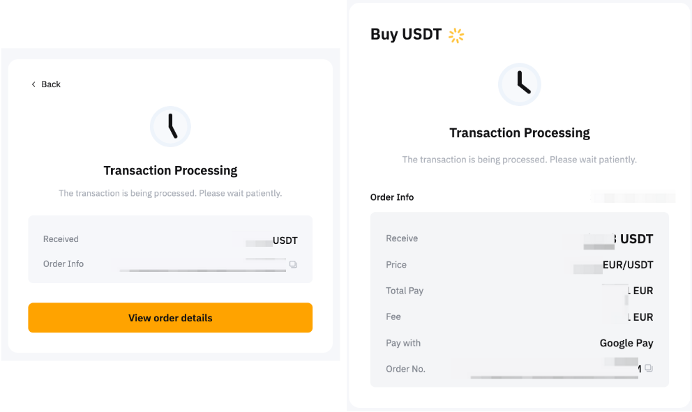 • Si el pago se completa pero la orden se cancela debido a un tiempo de espera, el sistema procesará el pago y acreditará las criptomonedas en su cuenta.