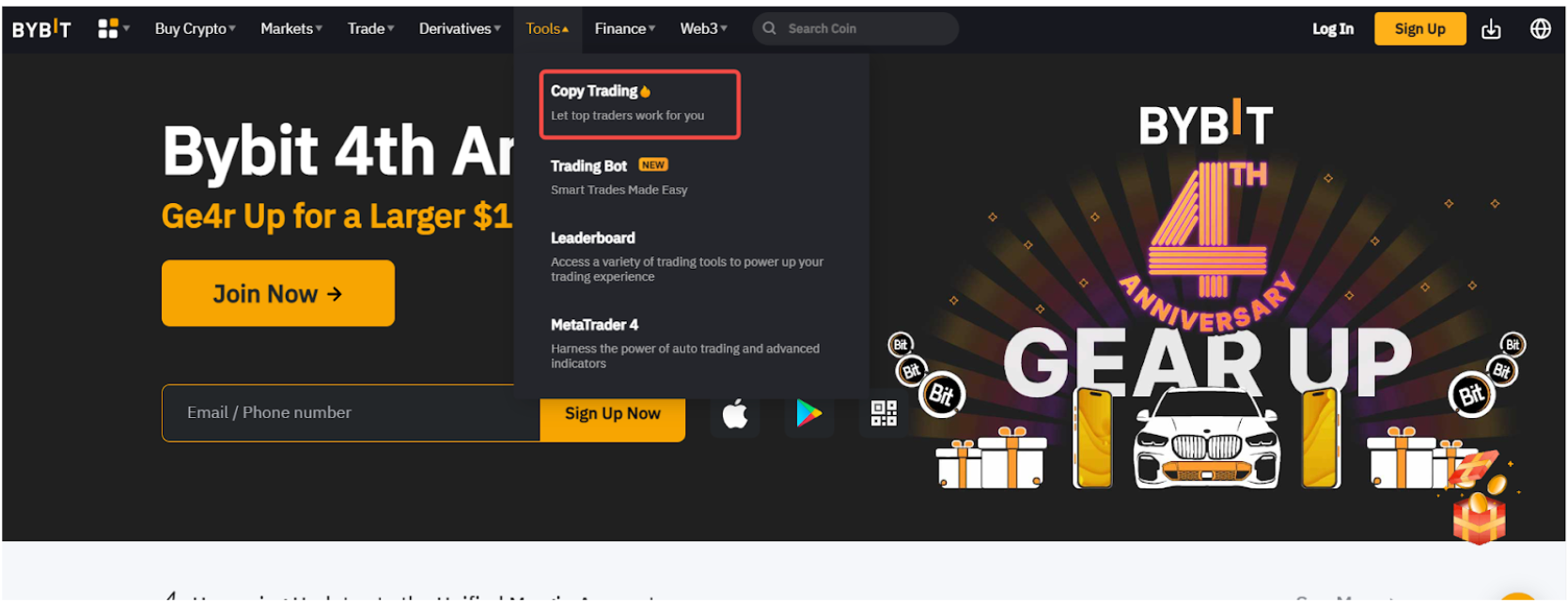Paso 1: Haz clic en Herramientas → Copy trading en la barra de navegación para acceder a la página de copy trading.