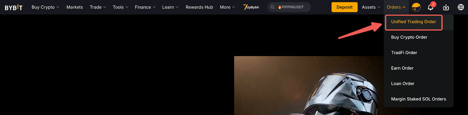 Langkah 1: Untuk mengekspor data riwayat produk perdagangan tertentu, buka Pesanan → Pesanan Perdagangan Terpadu dari Laman Beranda Bybit.