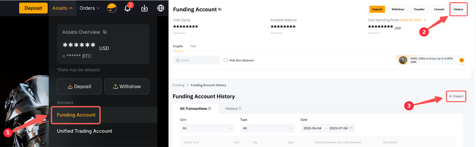 Atau, buka Aset → Akun Pendanaan → Riwayat → Ekspor Data.