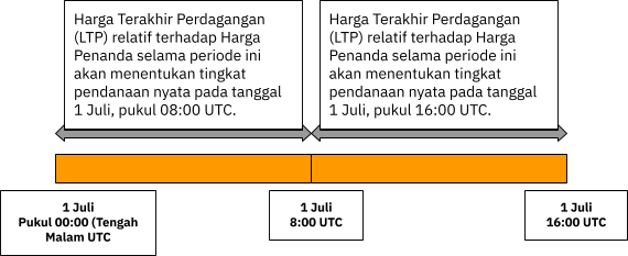 - Tingkat pendanaan yang dihitung antara 08:00 UTC dan 16:00 UTC akan ditukar pada pukul 16:00 UTC.