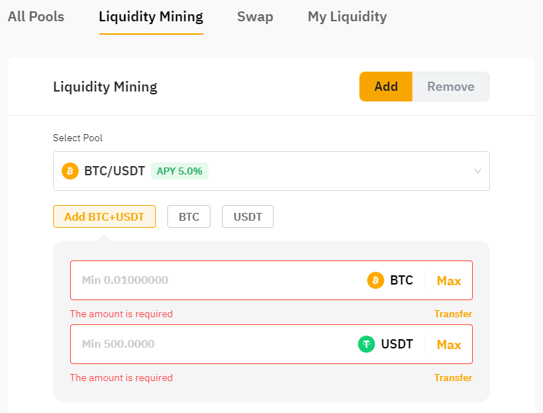 Bybitの流動性マイニングでは、トークンを該当のプールへ1~2種類提供できます。システムは、プールの現在の構成に基づいてトークン量のバランスを自動的に取ります。