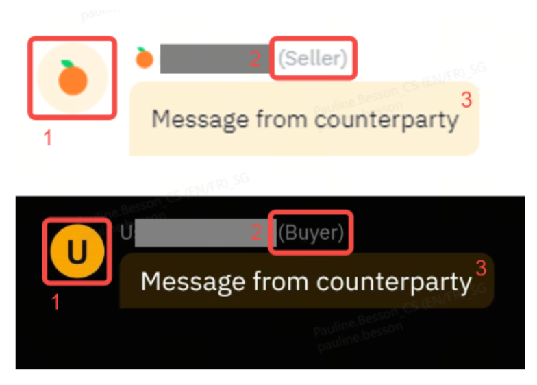 - P2P注文チャットボックスでは、必ずプロフィールのアバターとメッセージの吹き出しのスタイルを確認し、取引相手が本物であることを確かめてください。役立つヒント: