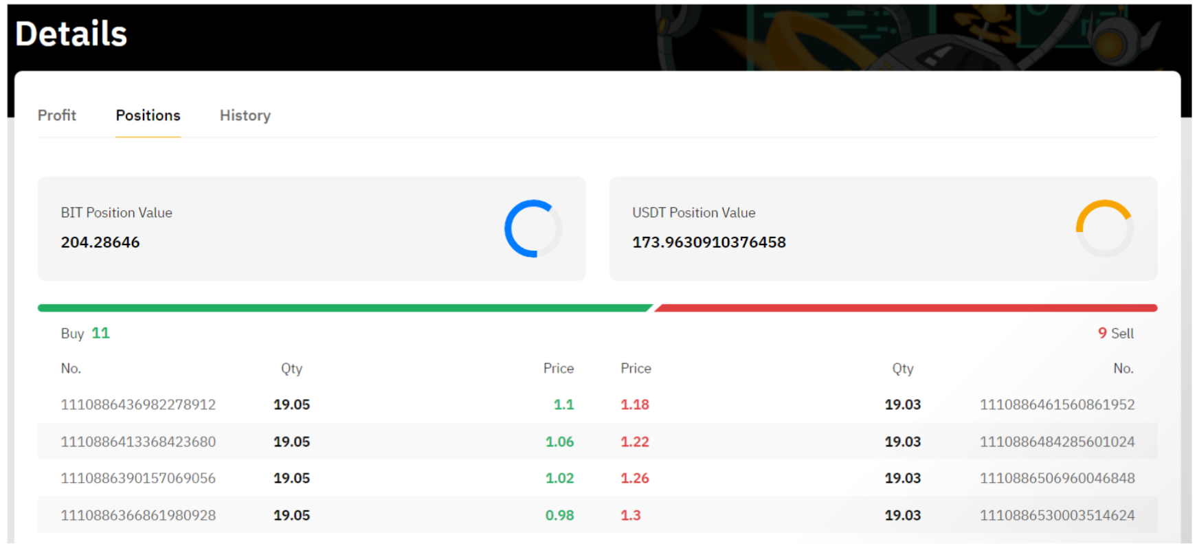 Isso inclui os lucros de Grid realizados, as taxas de negociação realizadas e o P&L não realizado decorrente da diferença entre o valor do token base calculado a partir do preço médio de compra e o preço atual. |