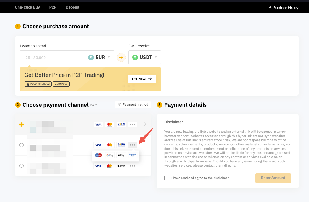 Para garantir uma Compre com apenas um clique tranquila, os traders são obrigados a realizar KYC com prestadores de serviços terceirizados. Uma vez verificado com sucesso, os provedores de serviços realizarão uma transferência imediata para creditar as criptomoedas nas contas Bybit dos traders. Geralmente, o tempo esperado para receber os depósitos será de 2 a 3 horas. Se os traders enfrentarem atrasos e não receberem seus depósitos após 24 horas, consulte sua caixa de entrada de e-mail para obter instruções por e-mail do provedor de serviços escolhido.