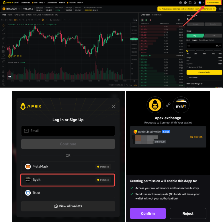 Você ainda pode gerenciar suas posições no site Apex. Se você já usou a Cloud Wallet para fazer trades, conecte-se usando a extensão.