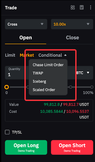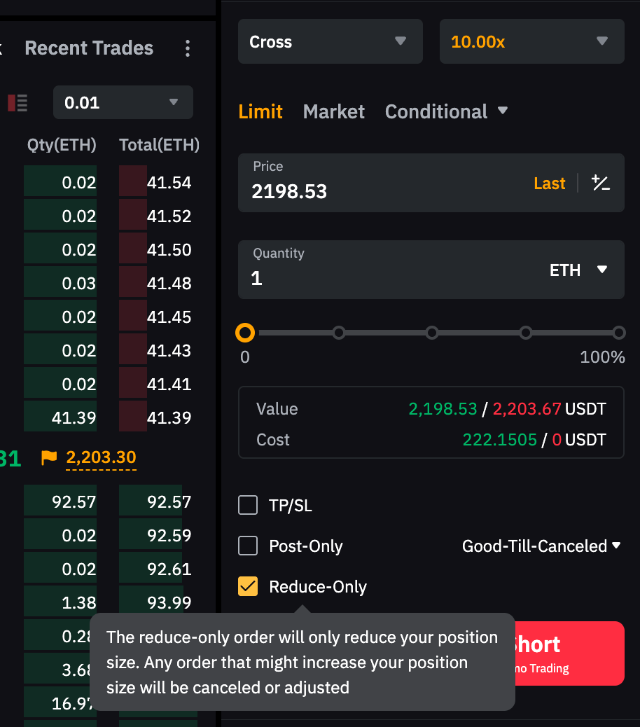You can also use advanced order tools to close positions. Ensure Reduce Only is selected to avoid unintentionally opening new positions. For more details, please refer to the respective guides: