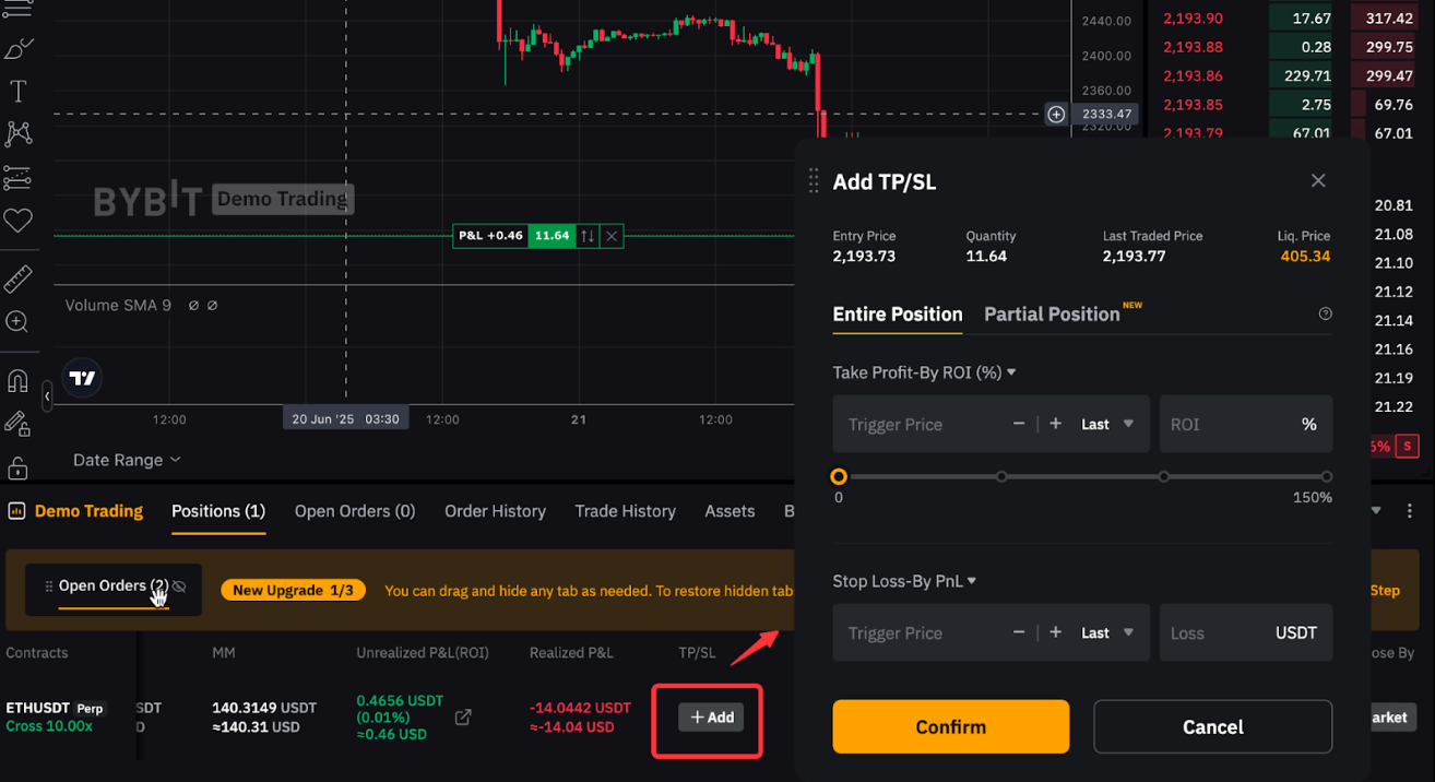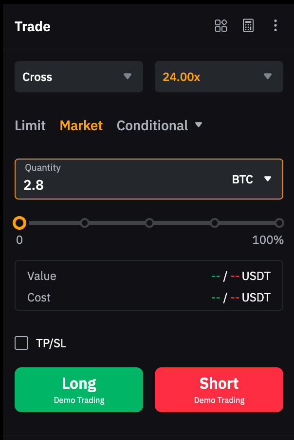 A TP/SL order allows you to set a target price to trigger a close order to secure profits or limit losses. For more details, refer to Introduction to Take Profit and Stop Loss (Perpetual and Futures Contracts).