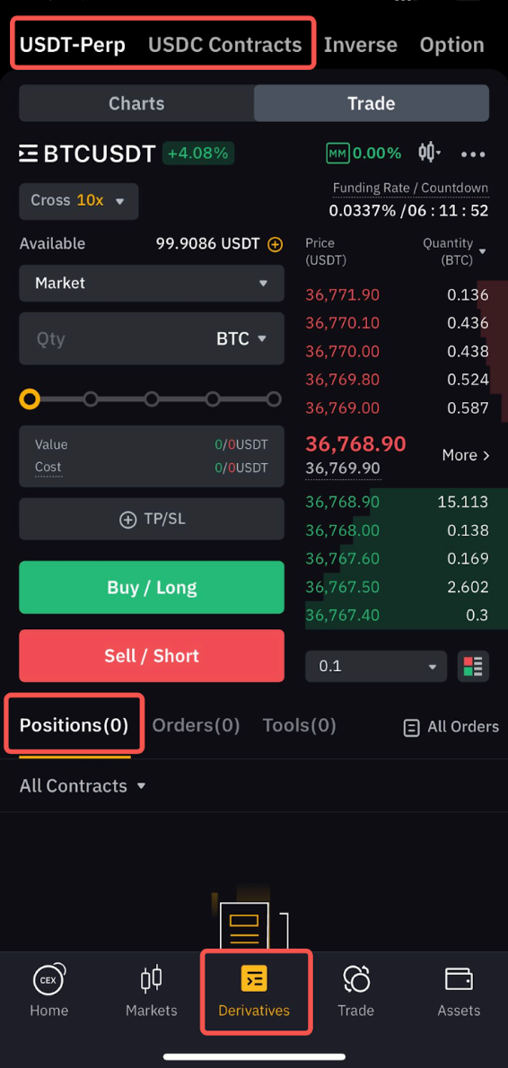 - Спот (USDT) и бессрочный USDT контракт