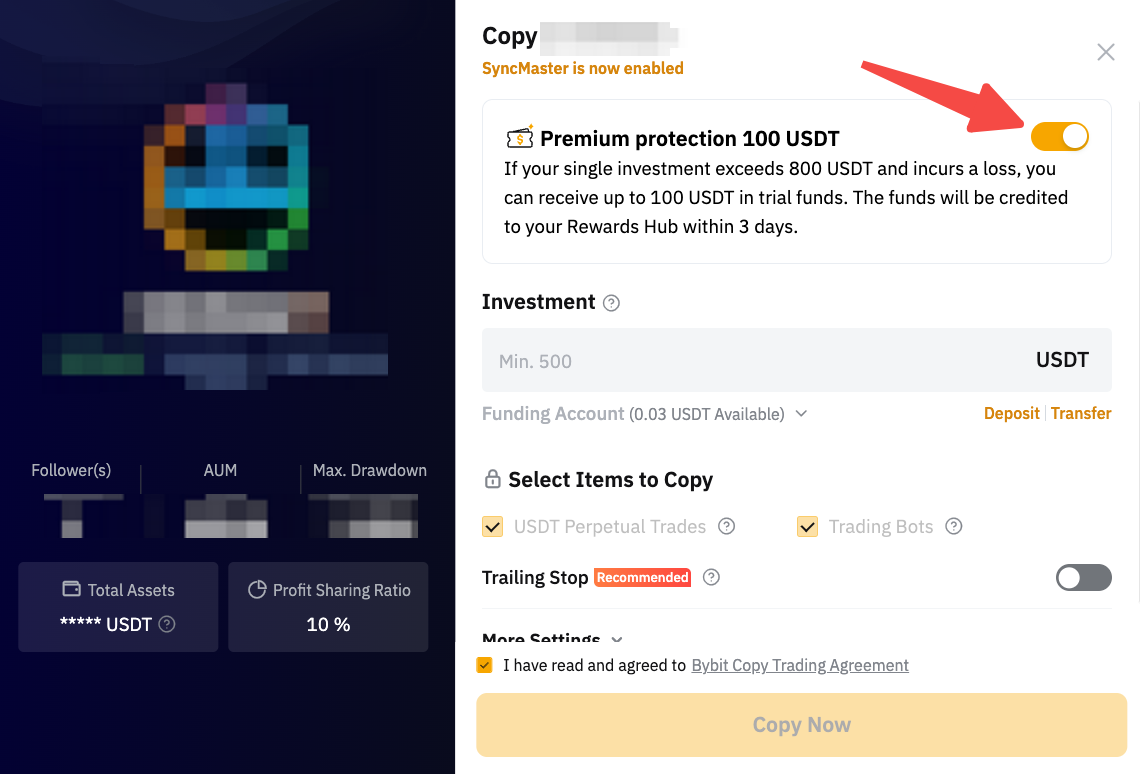 - Премиум-ваучер для защиты: Страховое покрытие может применяться к Мастерам Трейдинга, когда вы включили переключатель для активации ваучера только в инвестиционном окне.