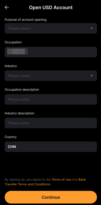 3. Заполните небольшую анкету, указав цель открытия счета, статус занятости, источник дохода и т. д.