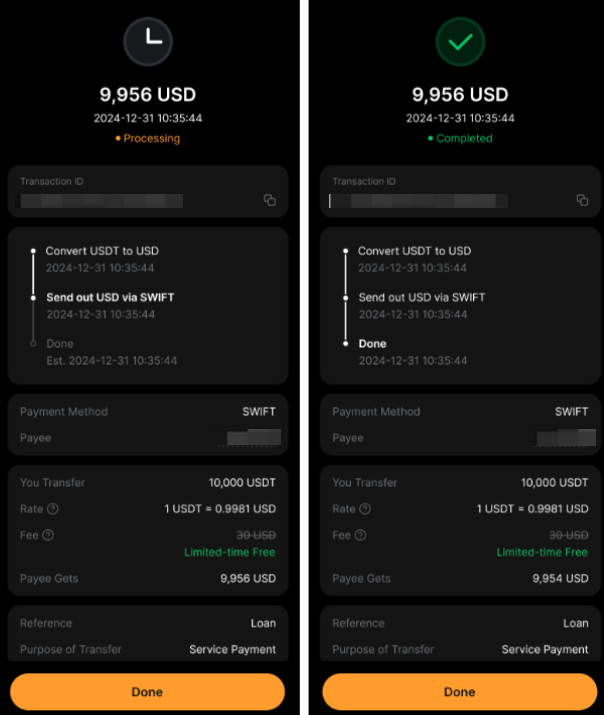 Шаг 4: Отслеживайте статус перевода на странице «история ордеров ». Вы получите push-уведомление и электронное письмо после завершения перевода.