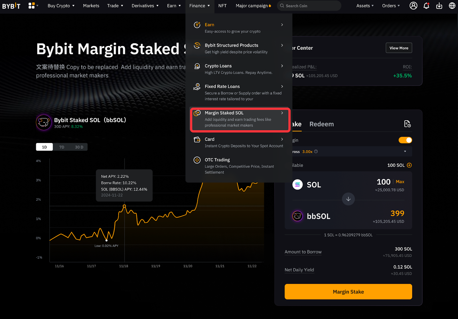 Шаг 1. На правой панели страницы Маржинальный стейкинг SOL настройте ордер стейкинга на основе следующей информации: