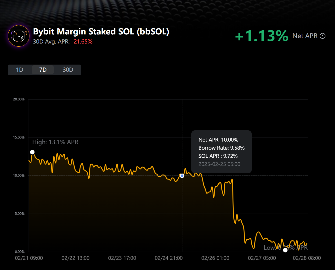 Шаг 3. Наведите курсор на график APR, чтобы посмотреть чистую APR, ставку по займу и APR SOL в любой конкретный момент времени.
