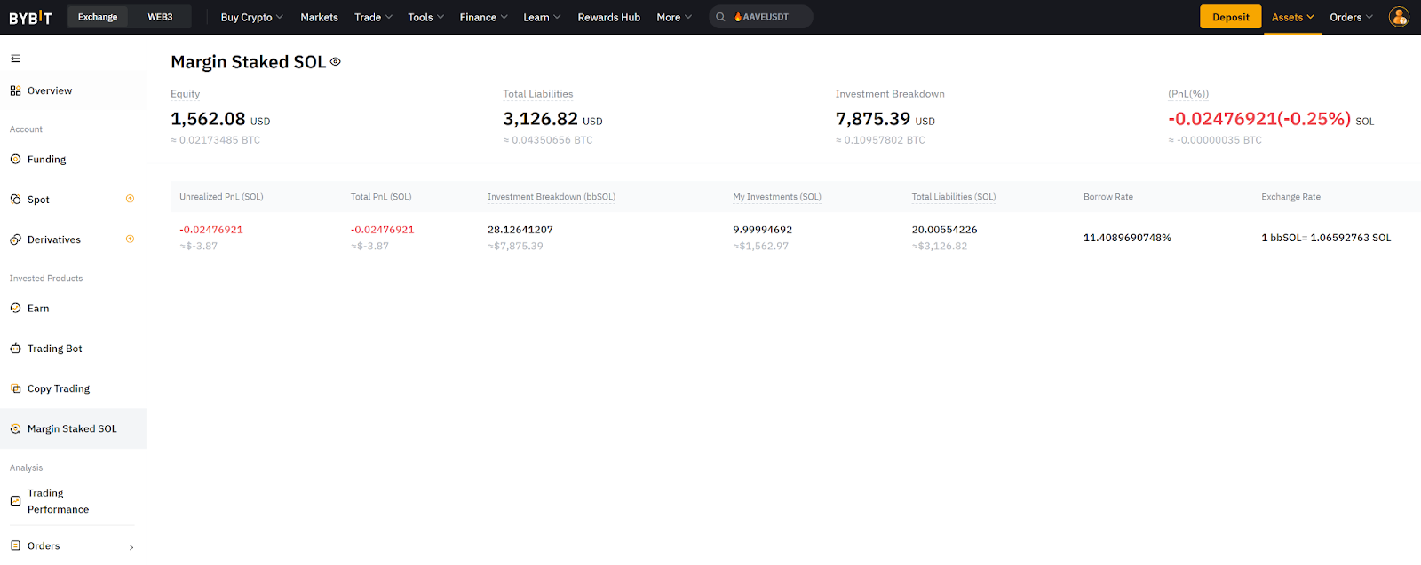 Посмотреть P&L, обязательства и другие сведения также можно на странице Активы маржинального стейкинга SOL.