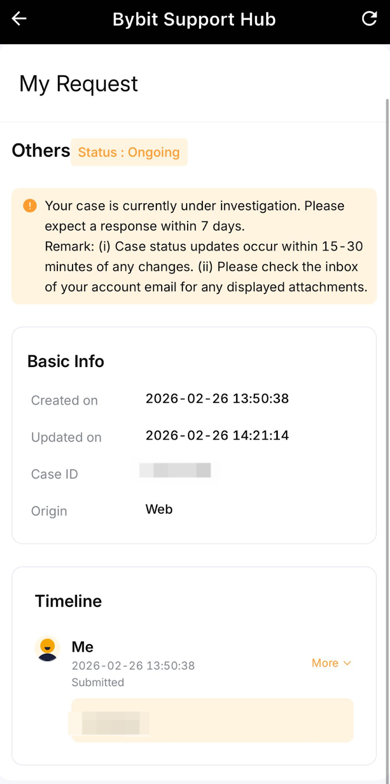 После отправки обращения в службу поддержки вы можете использовать Центр поддержки Bybit для отслеживания его статуса в режиме реального времени, не полагаясь исключительно на уведомления по электронной почте. На этой централизованной панели отображаются все ваши открытые обращения и их обновления, а также предоставляется возможность напрямую взаимодействовать с нашей службой поддержки.