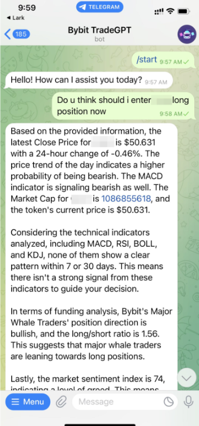 — При любом взаимодействии с ботом — через группу в Telegram, канал или в личном чате — торговые сигналы будут поступать в виде личных сообщений непосредственно от Telegram-бота Bybit TradeGPT.