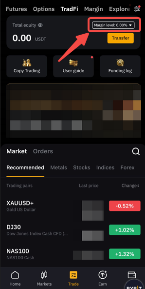 Уровень маржи для TradFi (MT5) в мобильном приложении Bybit можно найти на вкладке «Торговать» ниже.