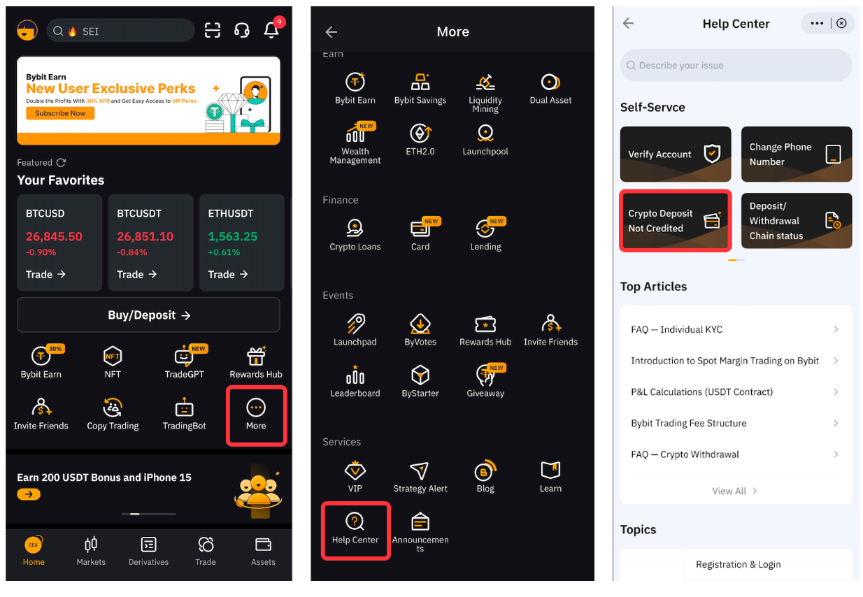Если вы используете приложение Bybit, нажмите Еще на главной странице и нажмите Справочный центр.