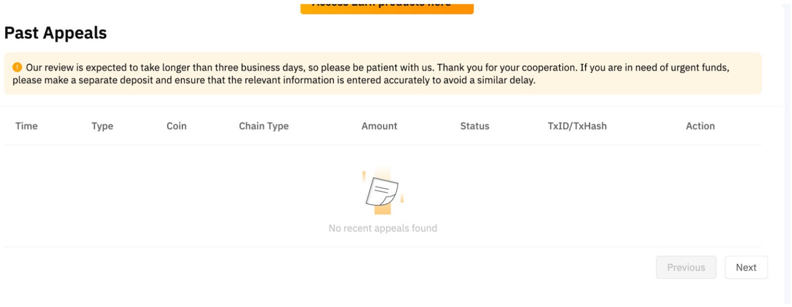 Кроме того, вы также можете просмотреть статус своей апелляции на странице «Прошлые апелляции».