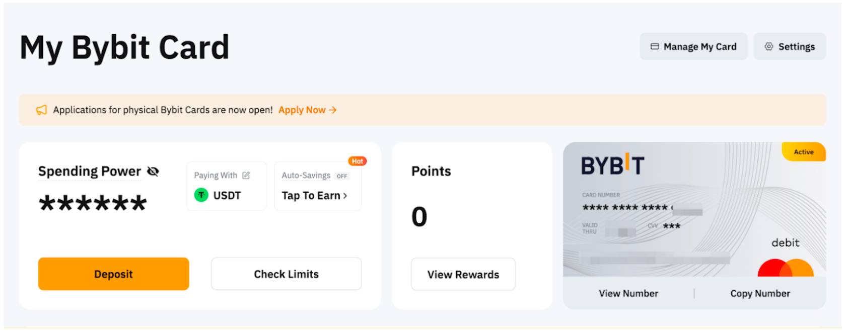 Так,після перевірки адреси ви можете подати заявку на отримання фізичної картки Bybit.