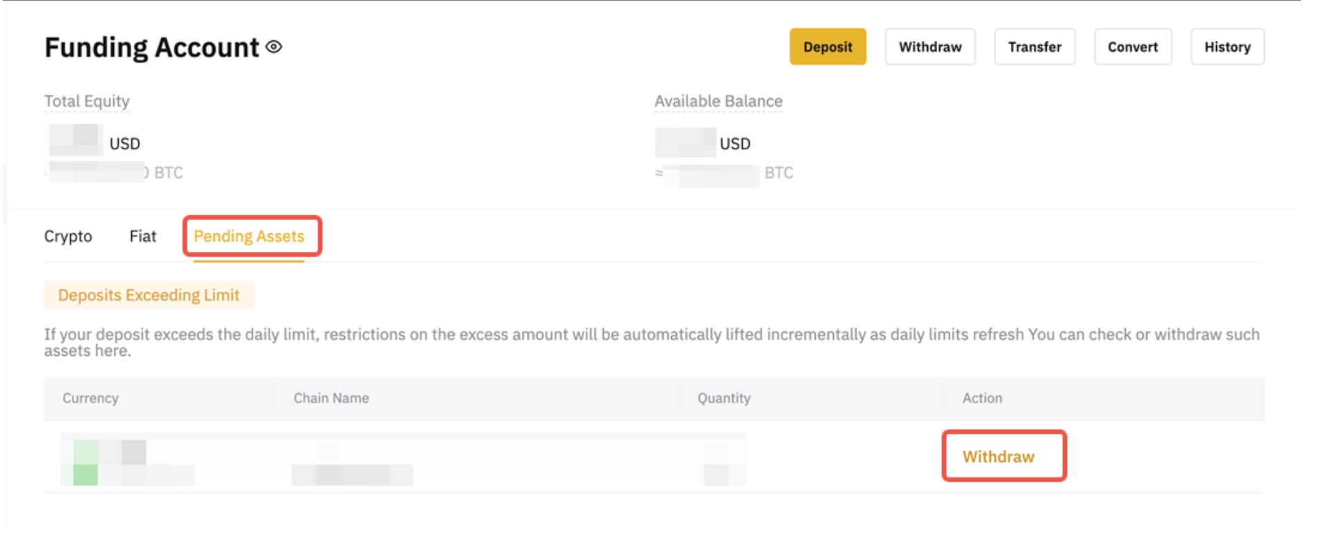 Tài Sản Đang Chờ Xử Lý đề cập đến các khoản tiền nạp đang chờ xác nhận tín dụng cho một blockchain cụ thể. Các khoản tiền nạp này cần thêm thời gian trước khi có thể được truy cập để giao dịch hoặc rút, phù hợp với giới hạn tín dụng nạp tiền.