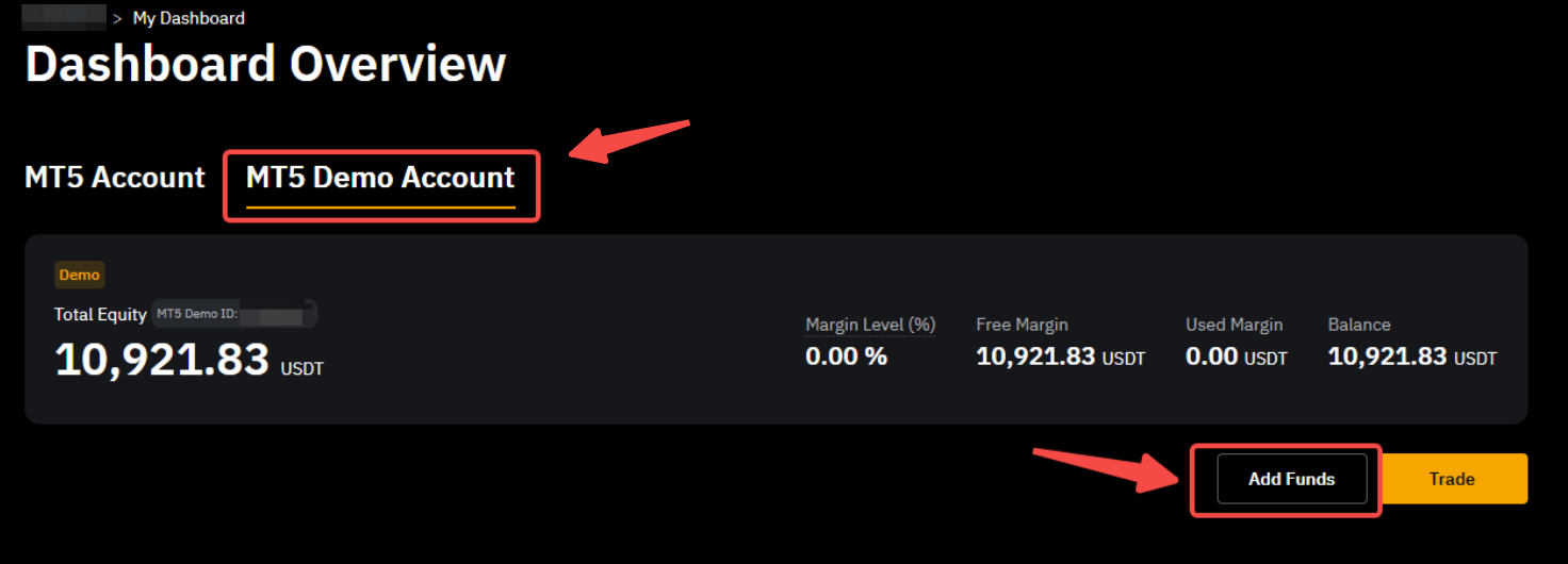 Làm cách nào để thêm và xóa tiền khỏi Tài Khoản Demo TradFi (MT5)?