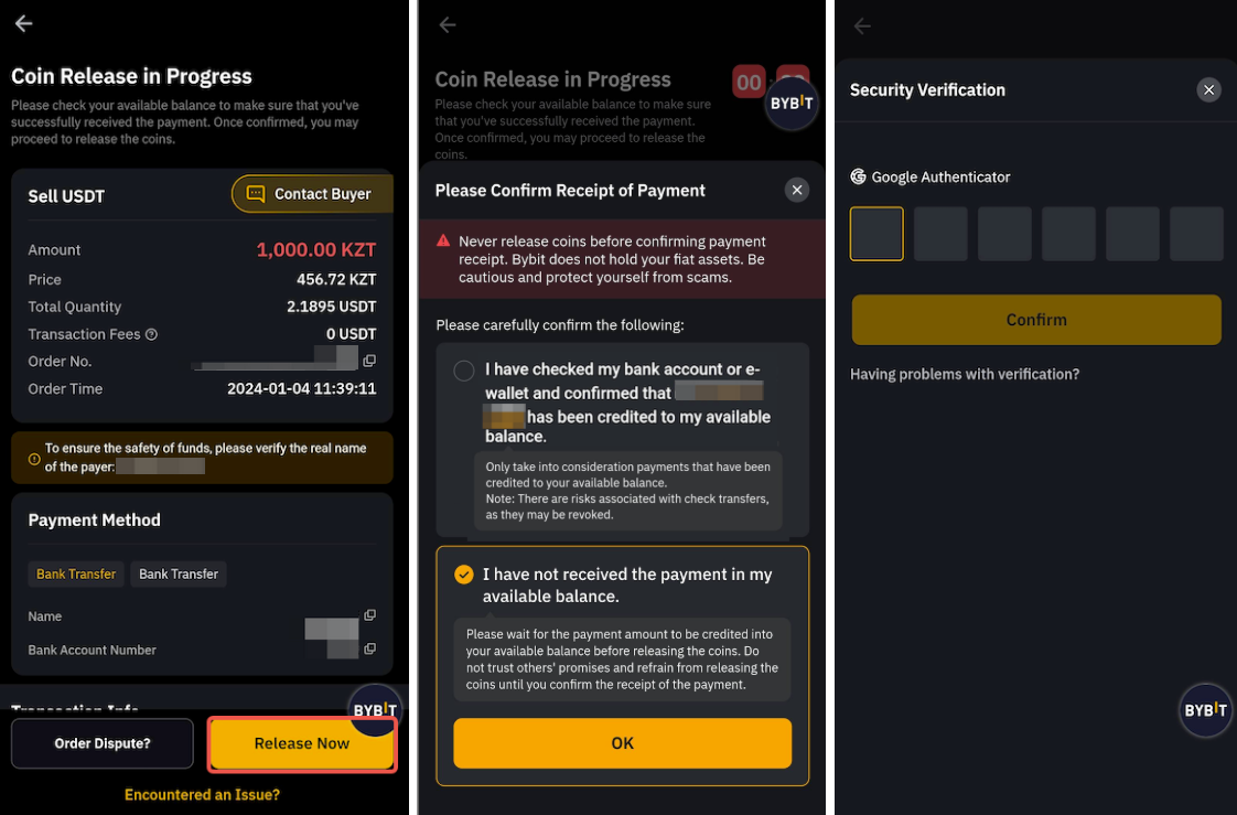 — Tên tài khoản ngân hàng của bạn phải trùng khớp với tên đăng ký của bạn trên Bybit. Nếu không, tài khoản của bạn có thể bị tạm ngưng và người mua có quyền từ chối mua coin với bạn.