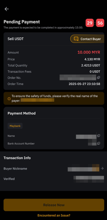 Bước 5: Bạn sẽ được chuyển hướng đến trang lệnh, nơi bạn sẽ thấy đồng hồ đếm ngược trong đó người mua cần hoàn tất thanh toán.