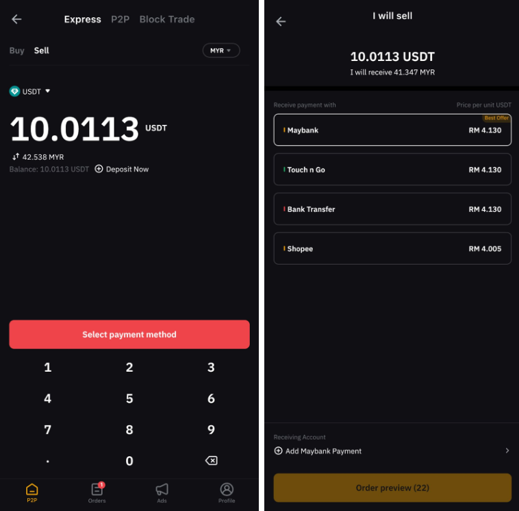 P2P Express được thiết kế để trở thành một giao dịch ngang hàng nhanh chóng và hiệu quả, cho phép các nhà giao dịch P2P bán crypto từ các nhà giao dịch khác mà không cần trung gian trên Bybit App. Điều này giúp người dùng mới bắt đầu dễ dàng nhanh chóng nhận được báo giá mà không gặp rắc rối khi sắp xếp thông qua nhiều quảng cáo.