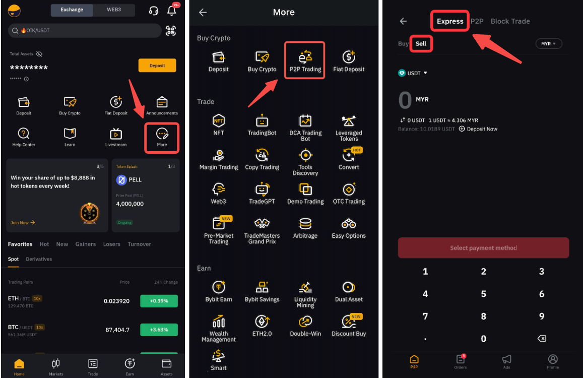 Bước 1: Trên trang chủ, vui lòng nhấp vào Thêm → P2P và ở đầu trang Giao Dịch P2P, chọn tab P2P Express.