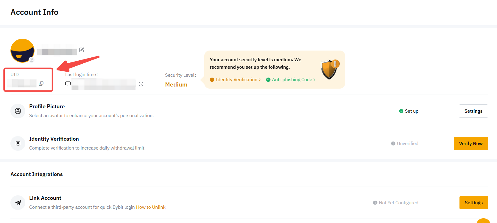 URL tên người dùng của tài khoản Mainnet: https://www.bybit.com/app/user/account-info
