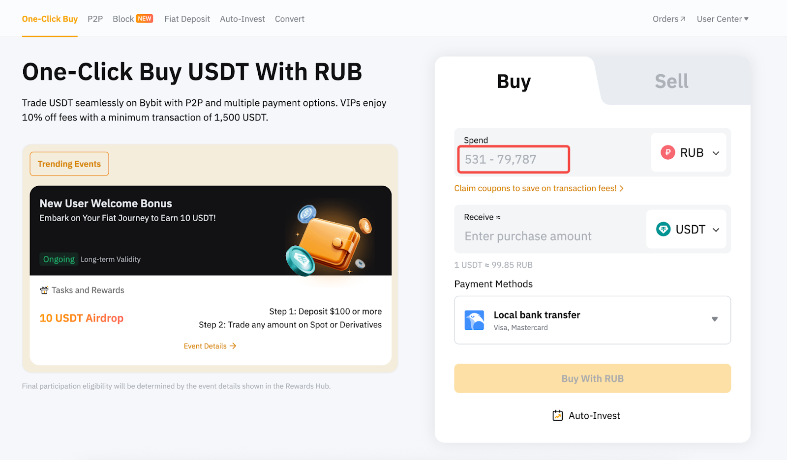 Xin lưu ý rằng giá và tỷ giá hối đoái được cung cấp trên Bybit chỉ mang tính biểu thị và không điều chỉnh linh hoạt dựa trên biến động giá tiền điện tử hoặc biến động theo thời gian thực.